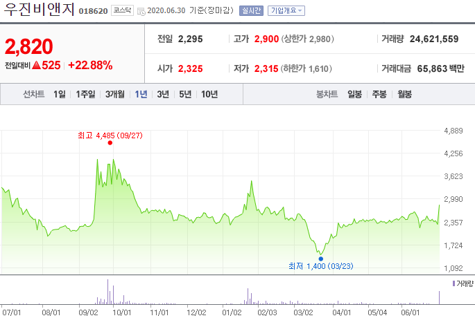 돼지독감이 발생했을 때 급등하는 종목 중 하나이며, 이글벳 다음으로 매입하는 주식이다. 현재 기업의 이름을 변경하고 주가가 약간 내려간 모습이 보이는데, 현재의 주가에서 매입하는 것을 추천한다.