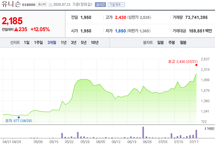 앞으로 그린 뉴딜 정책이 안정적으로 시행된다면 풍력발전 테마는 꾸준히 상승할 것으로 보이며 유니슨의 주가도 오름세를 보일 것으로 판단된다. 관망을 하다가 매입하는 것을 추천한다.