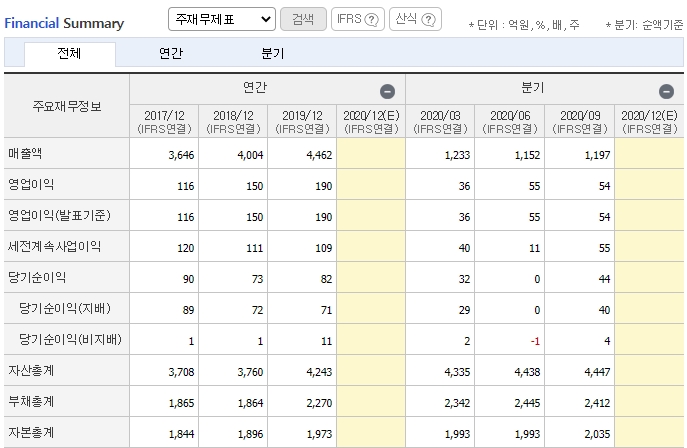 재무제표를 살펴보면 영업이익이 약 50억원으로 기업을 운영중이며 동방과 마찬가지로 매년 이익이 늘어나고 있는 추세입니다.