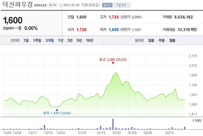 가덕도 신공항 관련주로 덕신하우징 종목이 있다는 것을 알려드렸지만 주가의 급등락이 상당히 심하기 때문에 매수를 추천드리지 않습니다.