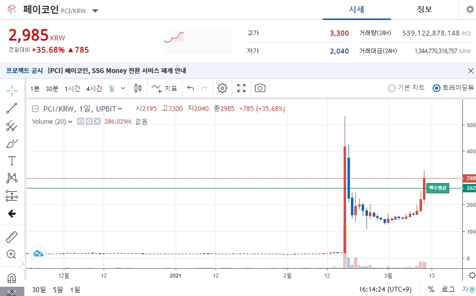 페이코인은 업비트밖에 없어서 업비트를 이용 중이며 주식과 같이 페이코인이라는 화폐를 사고팔 수 있답니다.