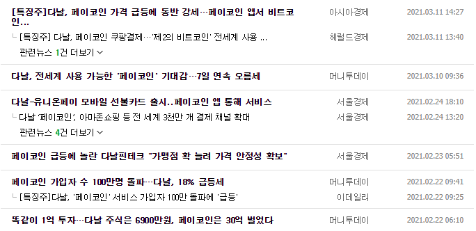개인적으로 다날을 매수하기보다는 페이코인을 매수하는 게 더 좋을 것이라고 생각이듭니다.